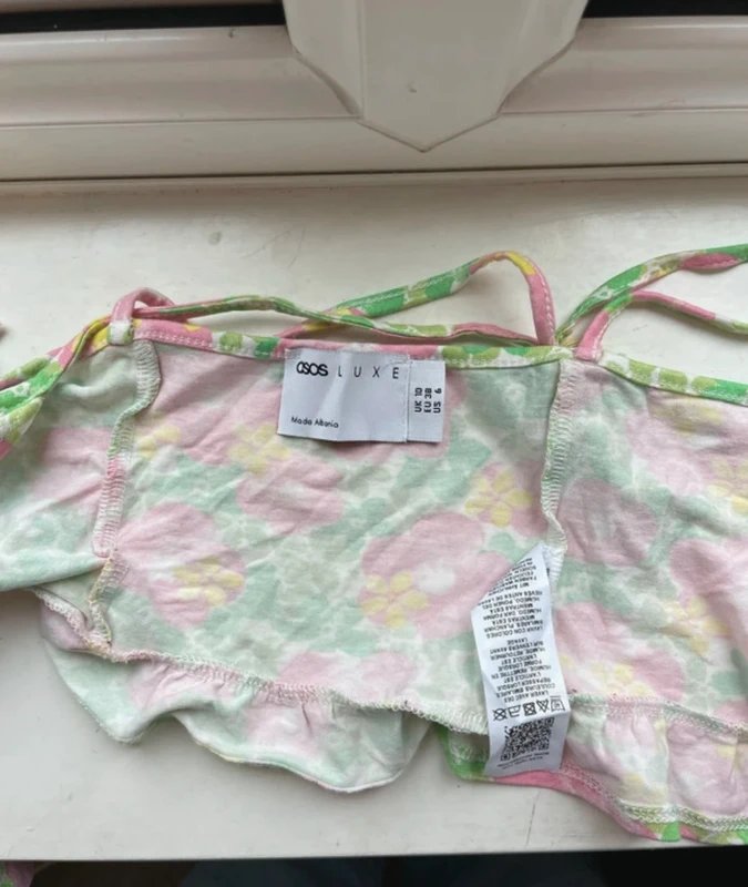 The ASOS Luxe Floral Tie Front Crop Top in Mint and Pink is available in sizes S.
