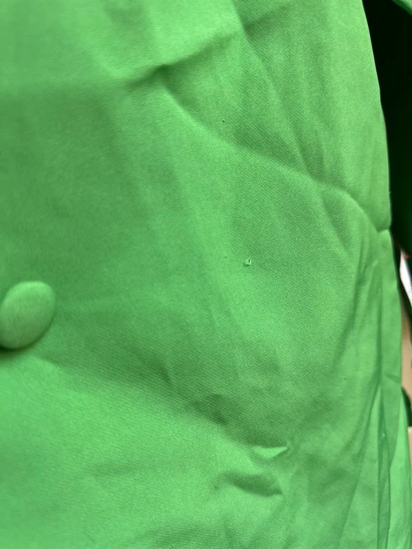 Bold green oversized blazer with shoulder pads and fabric-covered buttons. Perfect for adding a pop of color to your wardrobe. Crafted from a blend of materials for a comfortable and stylish fit.