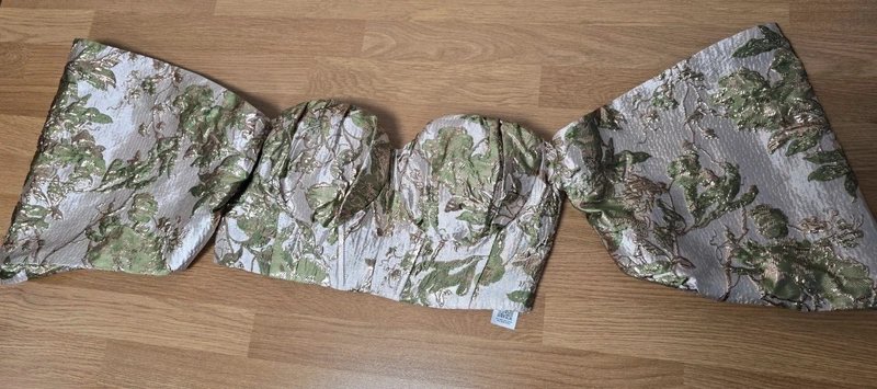 New without tag. Features a green and gold floral jacquard design, perfect for a casual yet elegant look.