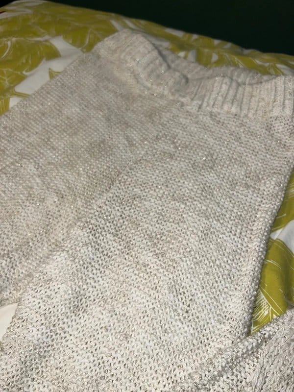 Designed with a sparkly finish, these knitted beach flares trousers in cream are perfect for a summer day out. The soft fabric ensures comfort while the flared legs add a touch of elegance.