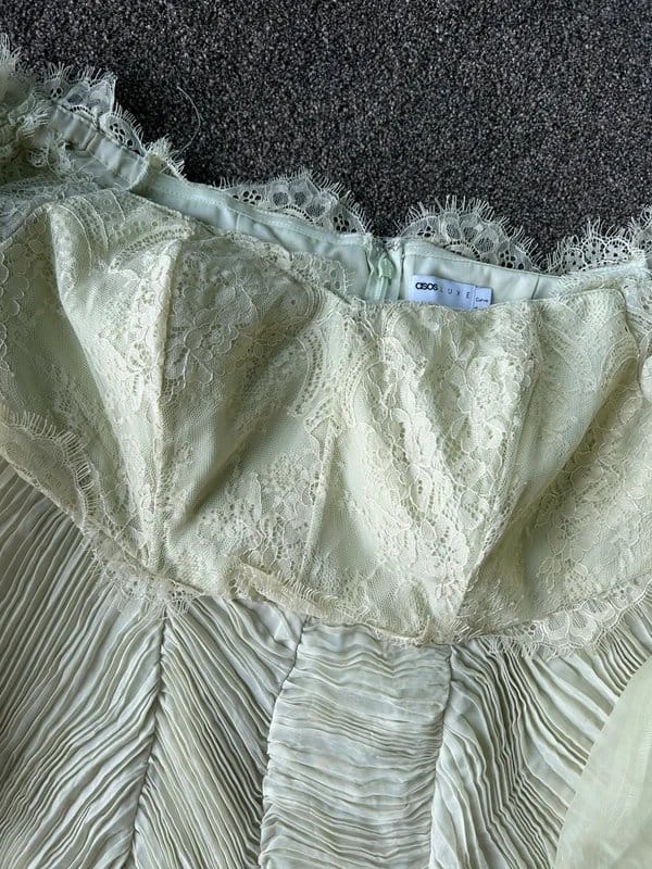 The ASOS Luxe Green Lace Mini Dress UK 16 is ideal for formal, evening, wedding-guest.