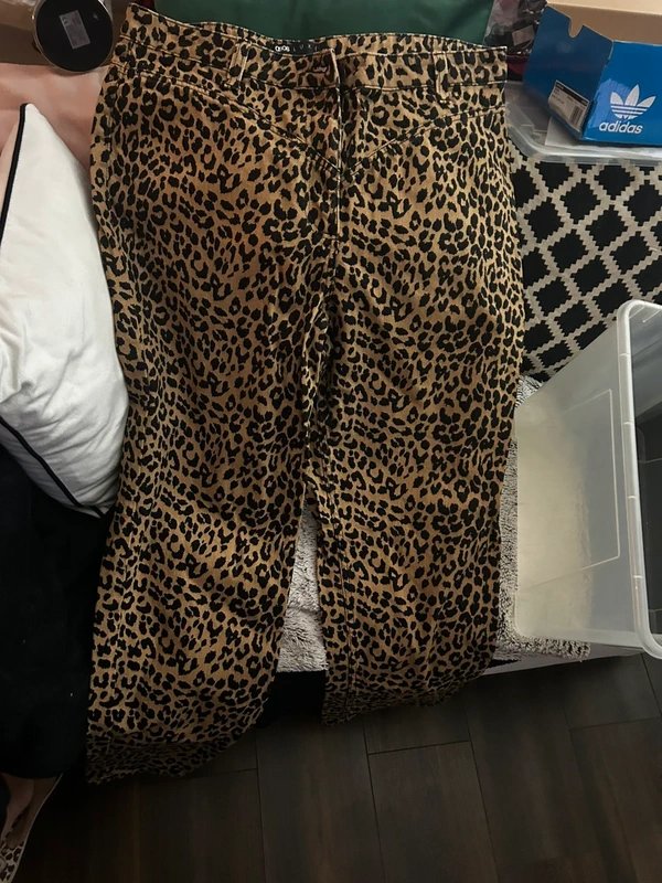 The ASOS Luxe Leopard Jeans in Brown is available in sizes XXL.