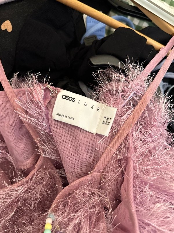 The lilac feathered bodysuit from ASOS Luxe is a unique piece that adds a touch of elegance to any wardrobe. Perfect for casual occasions, this piece features a scoop neckline and sheer straps that offer a flattering fit.