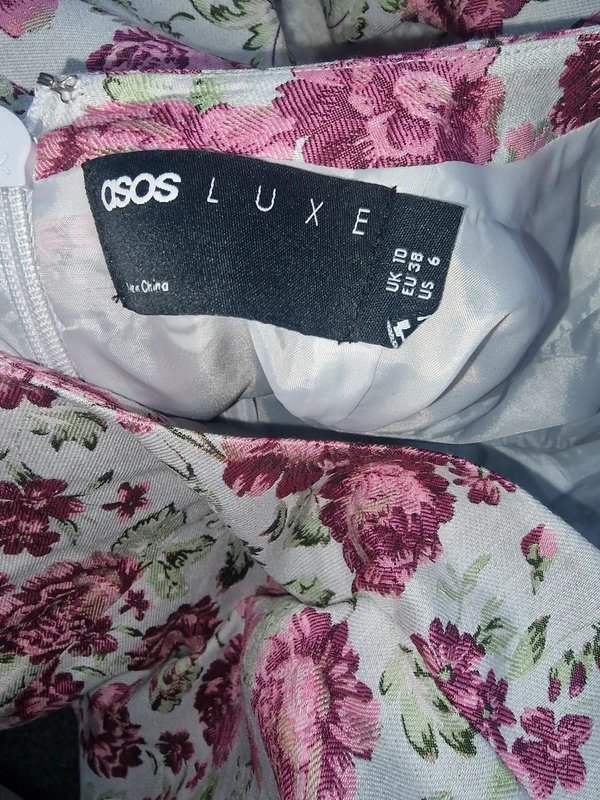 The ASOS Luxe Floral Mini Dress is available in sizes S.
