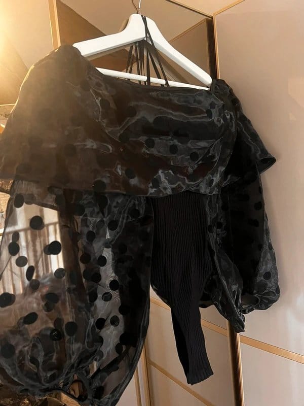 The ASOS Luxe Off-Shoulder Balloon Sleeve Bodysuit in Black is ideal for evening.