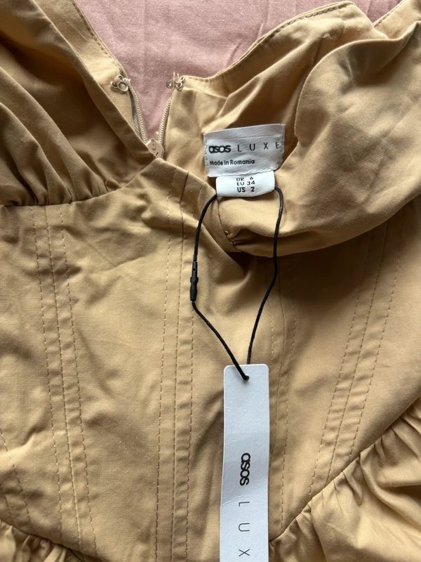 The ASOS Luxe Beige Cotton One Shoulder Corset Dress is available in sizes S.