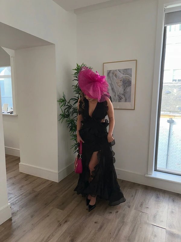 Designed for elegance, this ASOS Luxe Plunge Maxi Dress features a ruched chiffon detail and an open back. Ideal for formal events, it exudes sophistication.