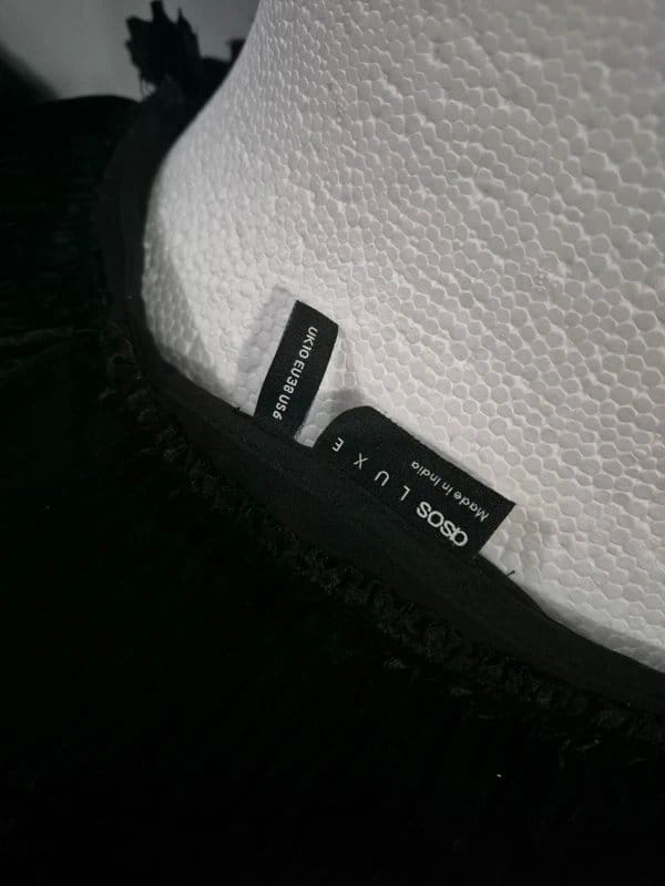 The ASOS Luxe Premium Ruffle Plunge Dress in Black is made from velvet.