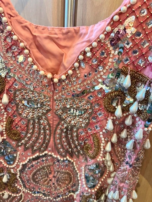 This ASOS Luxe Sequin Dress is a stunning piece adorned with intricate sequins and pearls. The pink fabric adds a touch of elegance, making it perfect for special occasions.
