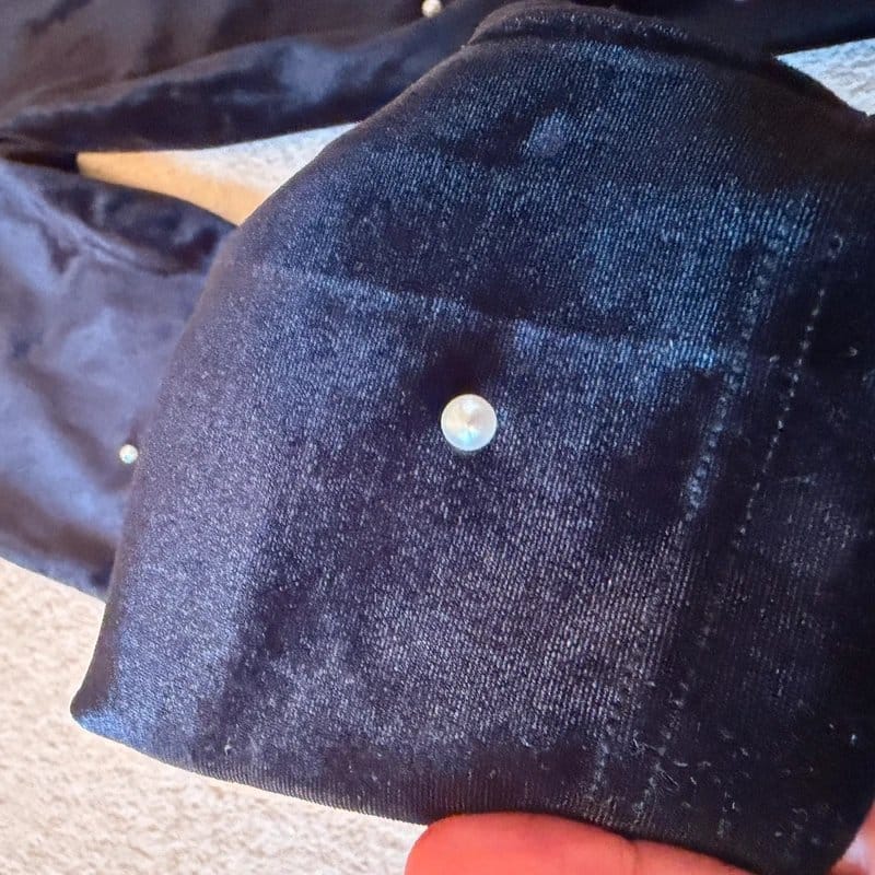 Luxurious black velvet trousers by ASOS featuring a pearl button detail. Perfect for a chic evening look, these trousers offer a slim fit and high-waisted silhouette.