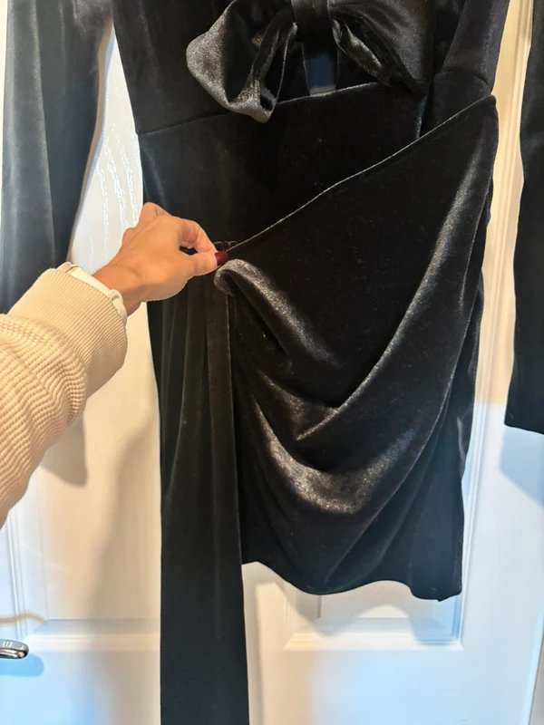 The ASOS Luxe Velvet Bow Mini Dress in Black is available in sizes S.