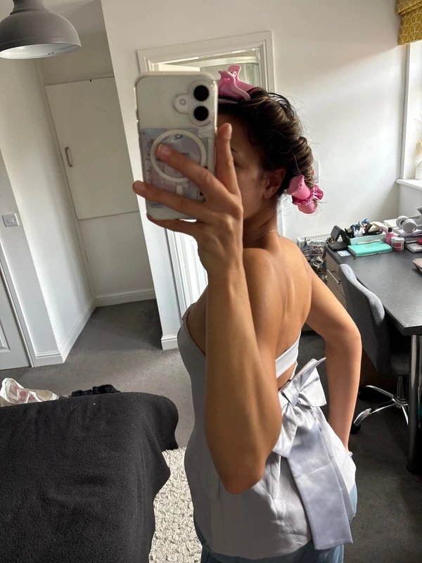 The ASOS Luxe Bandeau Top with Bow Detail in Grey is available in sizes XS.