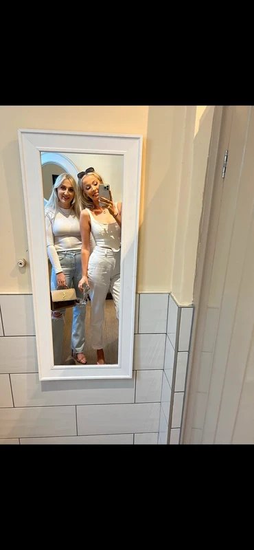 The ASOS Luxe White Denim Jeans is available in sizes S.
