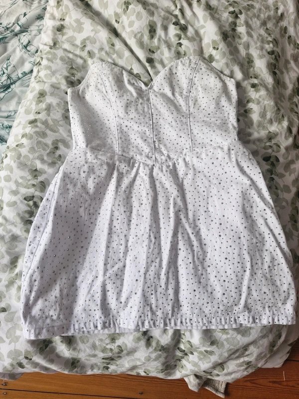 The ASOS Luxe White Dress with Dots in White is available in sizes L.