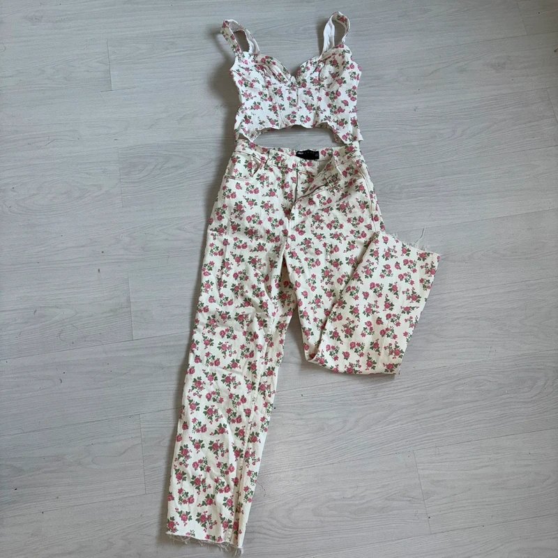 Designed with a floral print, this co-ord set from ASOS Luxe combines a cropped top with matching high-waisted trousers. Perfect for a casual look, the ensemble features a playful and feminine aesthetic.