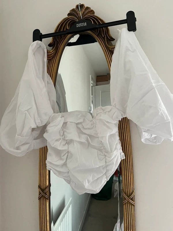 ASOS Luxe White Ruched Cropped Top with Wire Sleeves