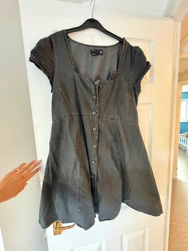 The ASOS Denim Maternity Dress in Black is available in sizes M.
