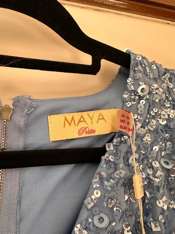 The ASOS Maya Blue Embellished Sequin Dress - Petite is available in sizes S.