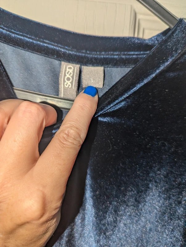 The ASOS Navy Velvet T-Shirt in Size L is made from velvet.