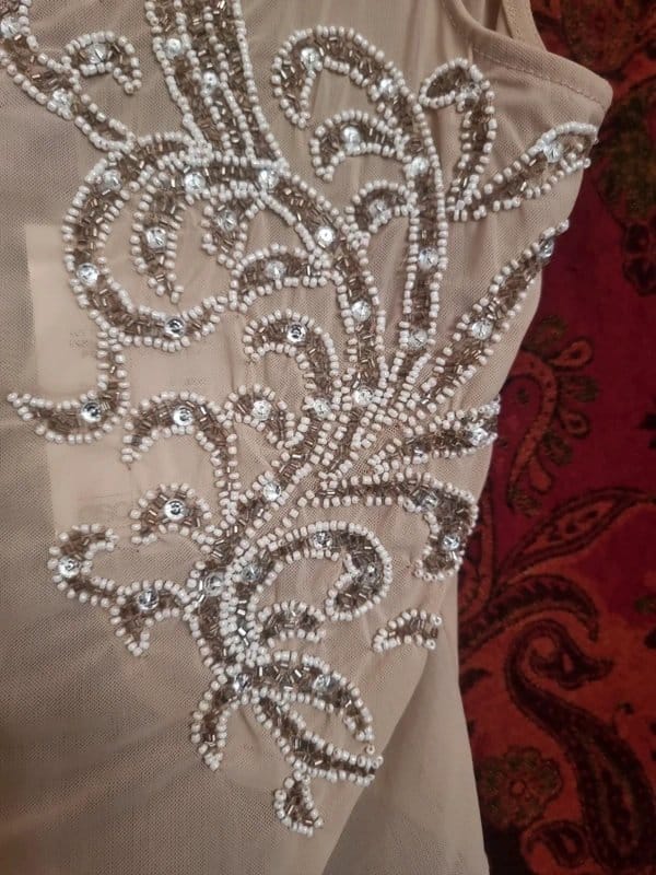 Nude Mesh Bodysuit Top from ASOS — the must-have for a chic, modern look. Designed in nude, this mesh bodysuit features beading and a thong back. Crafted from lightweight sheer mesh with subtle shimmer, it catches the light beautifully. Includes a full-length jersey slip lining for comfort and coverage.