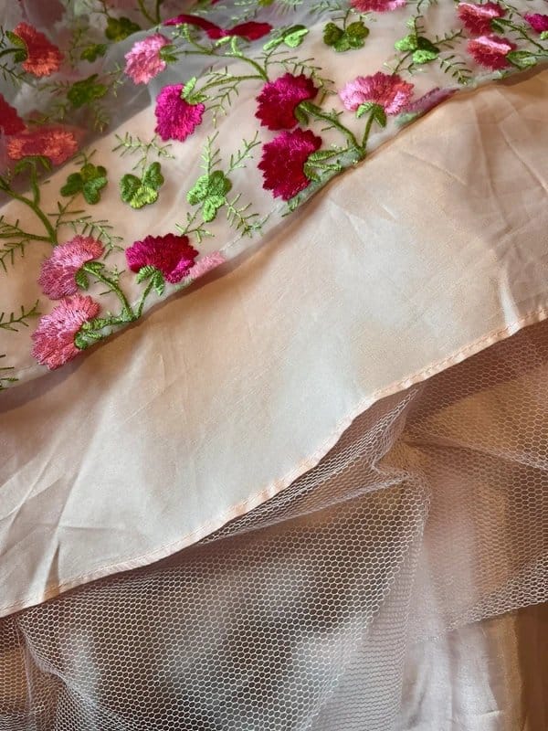 Crafted with pink floral print, this fit and flare dress features a tulle layer for a touch of elegance. Perfect for any special occasion, this dress is designed to make you feel confident and beautiful.