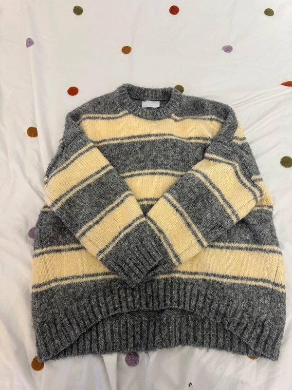 The ASOS Oversized Knit Jumper in Cream and Grey is available in sizes S.