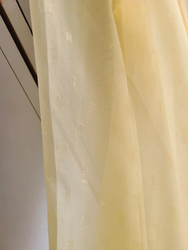 A delicate pale yellow chiffon midi dress from ASOS. Featuring a fitted bodice and a slightly flared skirt, this dress is perfect for special occasions with its elegant and ethereal look.