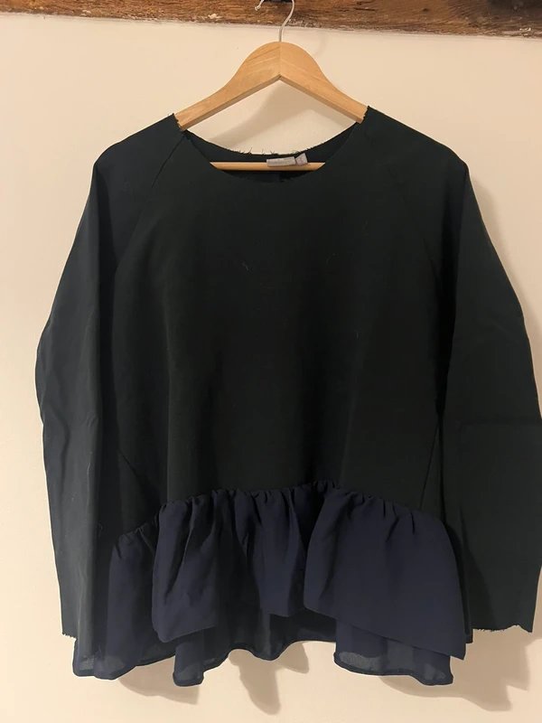 Featuring a distressed neckline and tulle peplum hem, this navy jumper from ASOS adds a touch of elegance and drama to your wardrobe.