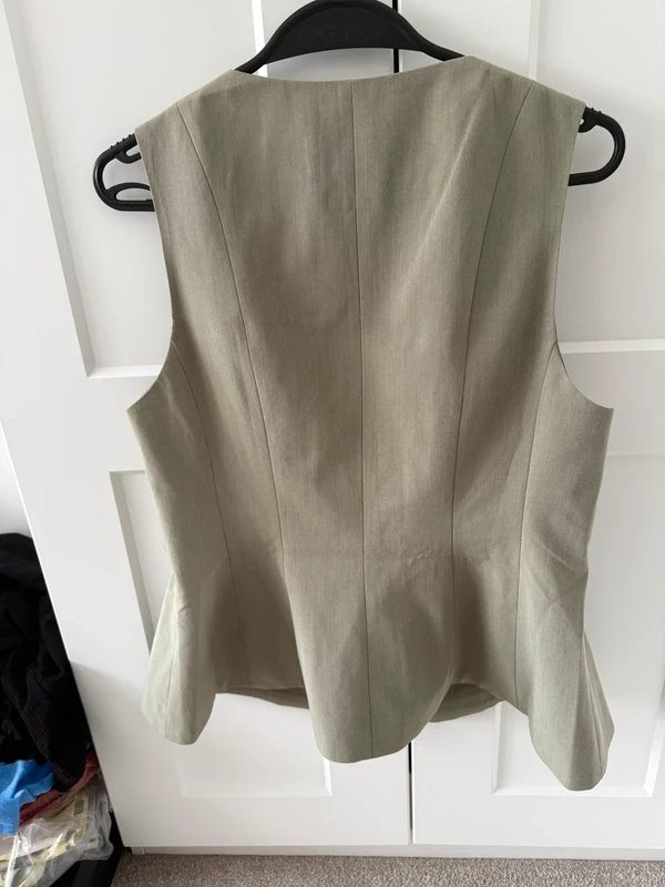 The ASOS Peplum Waistcoat in Khaki is available in sizes M.