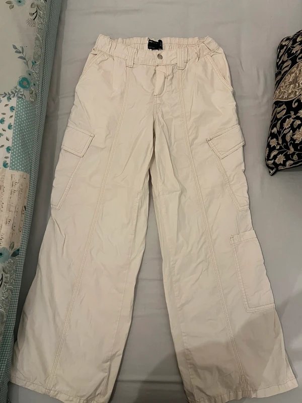 The ASOS Petite Off White Cargo Pants is available in sizes S.