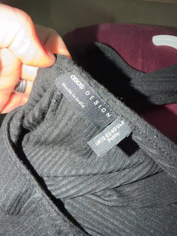 The ASOS Black Ribbed Playsuit Petite is made from cotton, polyester.
