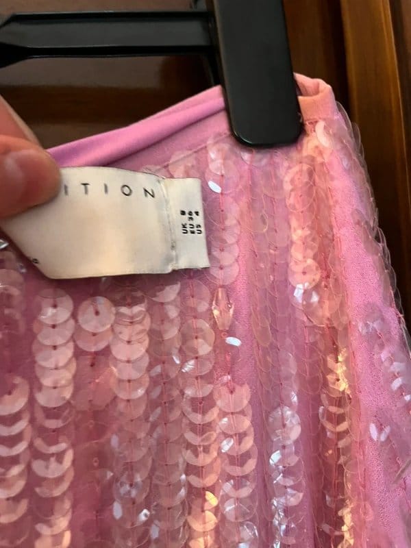 A gorgeous pink sequin embellished co-ord set from ASOS. The set includes a crop top and a maxi skirt, both adorned with delicate sequins. Perfect for balls, formals, and birthdays.