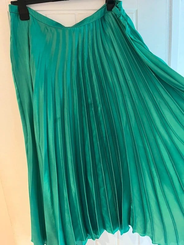 The ASOS Green Pleated Satin Midi Skirt Size 18 is ideal for casual, evening, party.