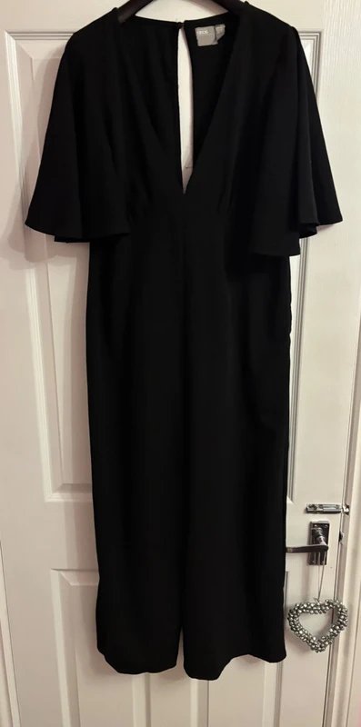 The ASOS Plunge Full-Length Jumpsuit in Black is available in sizes M.