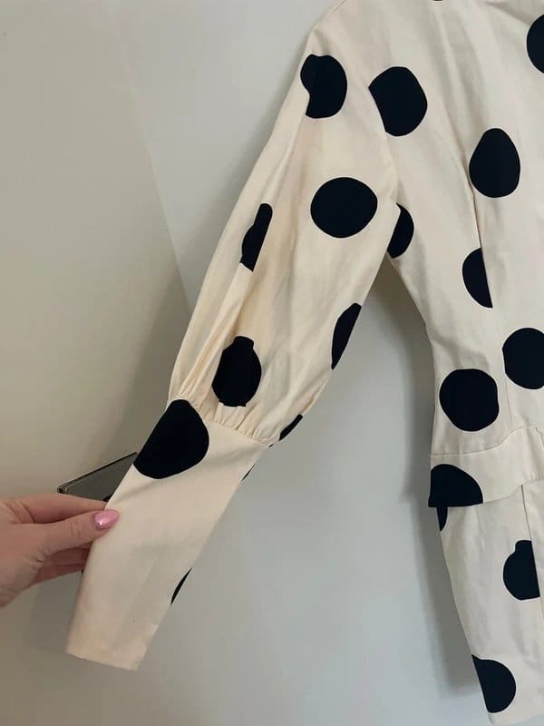 This polka dot dress from ASOS is perfect for any occasion. Designed in a polka dot pattern, this dress features long sleeves and a button closure. Crafted from lightweight cotton, it offers a casual yet dressy look. Ideal for party or casual wear, this dress is a versatile addition to any wardrobe.