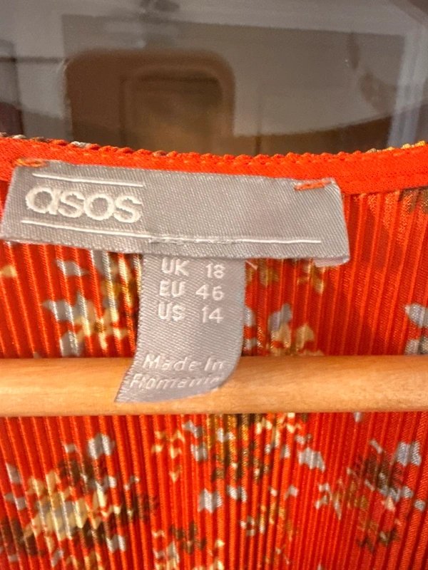 The ASOS Vintage Floral Plisse Mini Tea Dress in Red is available in sizes L.