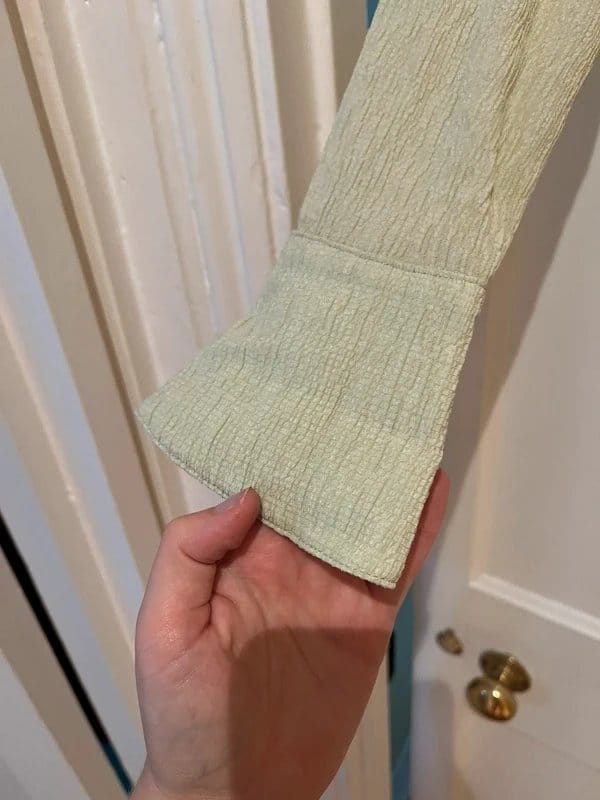 This ASOS mint ruched crinkle shirt features a flattering cut and cute cuffs. Made from a pastel green crinkle fabric, it adds a touch of freshness to any outfit.