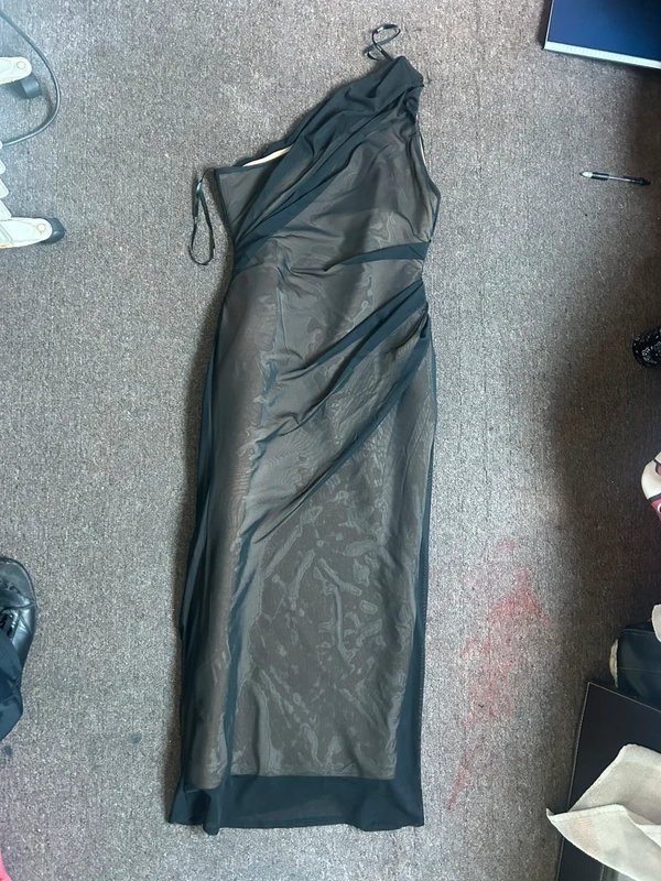 Gorgeous size 14 ASOS one shoulder evening dress, with a nude/water type look. Crafted with thick material, this dress offers comfort and elegance for special occasions.