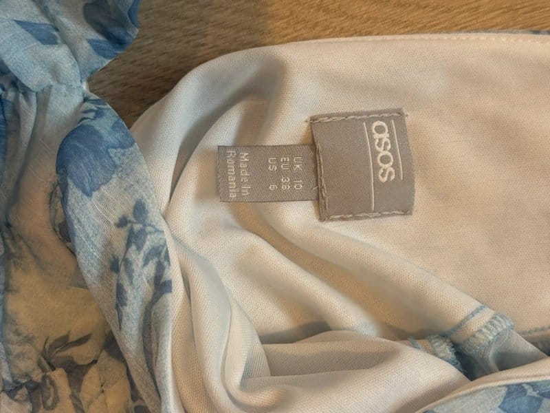 The ASOS Light Blue and White Floral Ruched Mini Dress is ideal for casual, beach, day out.