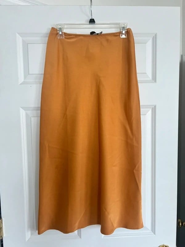 ASOS Orange Satin Midi Skirt
