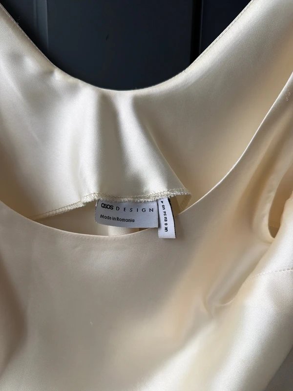 The ASOS Cream Satin Vest Top is available in sizes S.
