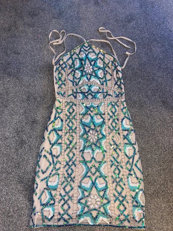 Back to ASOS Sequin Embellished Halterneck Mini Dress - Size 8 →