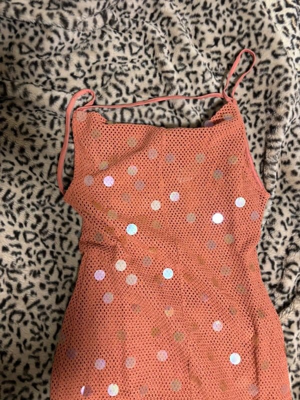 This coral sequin knit maxi dress from ASOS features a sparkly sequin design with a strapless neckline and adjustable straps. The maxi length and lightweight knit fabric make it perfect for beach outings or summer parties.