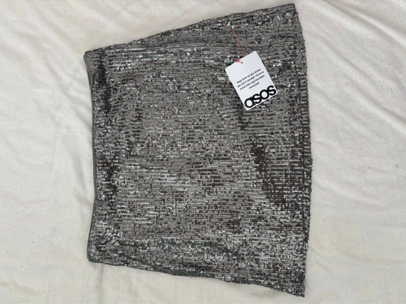 The ASOS Silver Sequin Mini Skirt is ideal for evening, party, date-night.