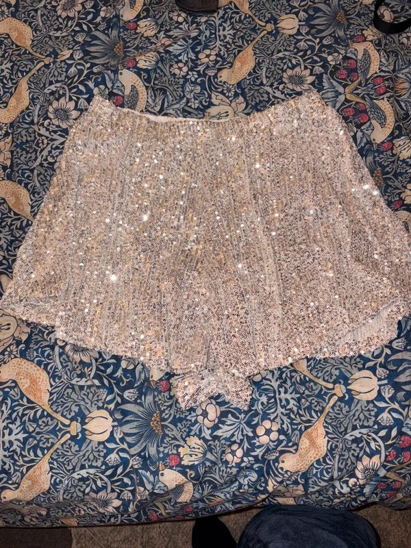 The ASOS Sequin Shorts in Silver is available in sizes L.