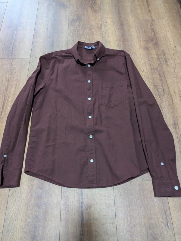 The ASOS Burgundy Long-Sleeve Shirt is available in sizes S.