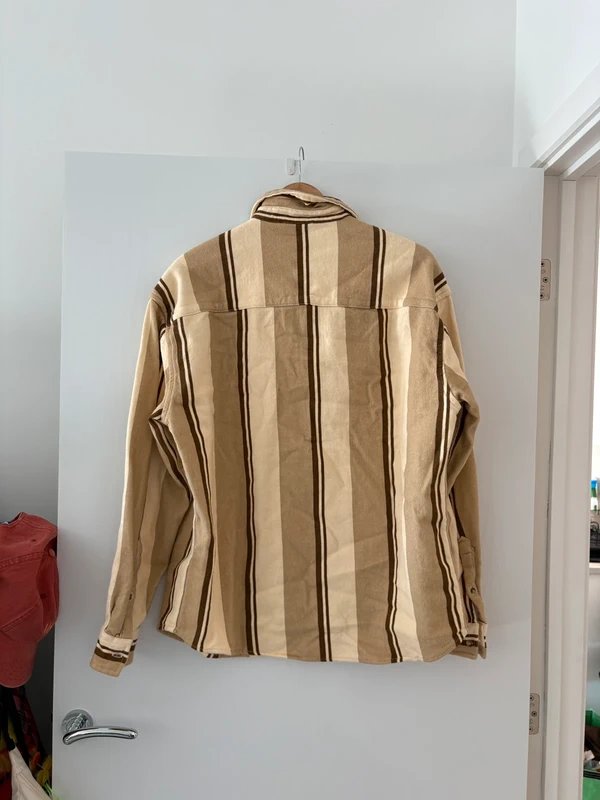 The ASOS Beige and Gold Striped Shirt Long Sleeve is available in sizes S.