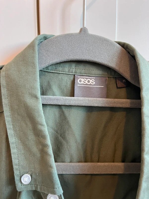 The ASOS Khaki Cotton Shirt Short Sleeve is available in sizes M.