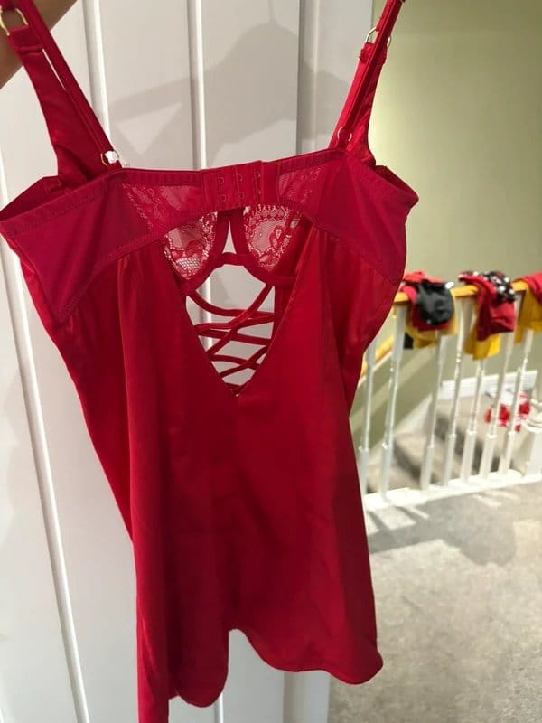 “Pair with red high-heeled sandals and a statement necklace for a glamorous evening look.”