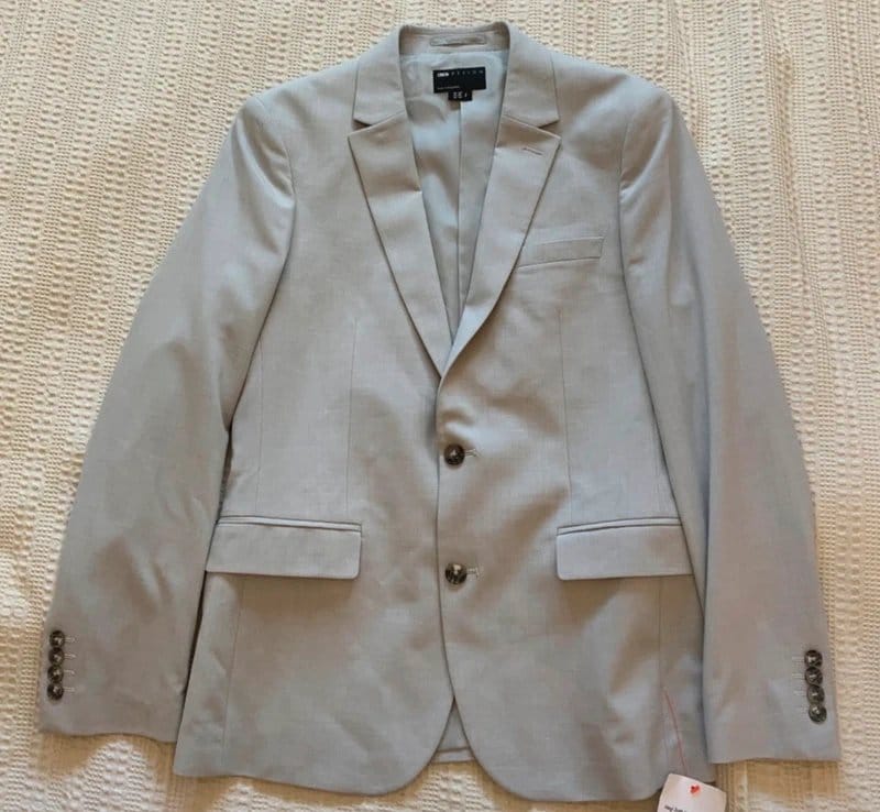 The ASOS Silver/Light Grey Blazer Jacket for Men is made from polyester, cotton.
